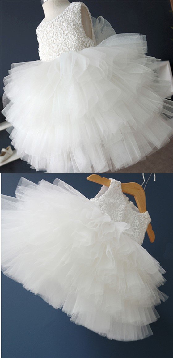 Off White Lace Top Tulle Flower Girl Dresses, Cute Tutu Dresses for Wedding, FG032