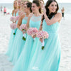 Unique Mint Green Halter Sleeveless A-Line Long Bridesmaid Dresses Online,WGM435