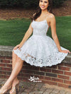 Elegant White Spaghetti Strap Lace Short Homecoming Dresses, EPT123