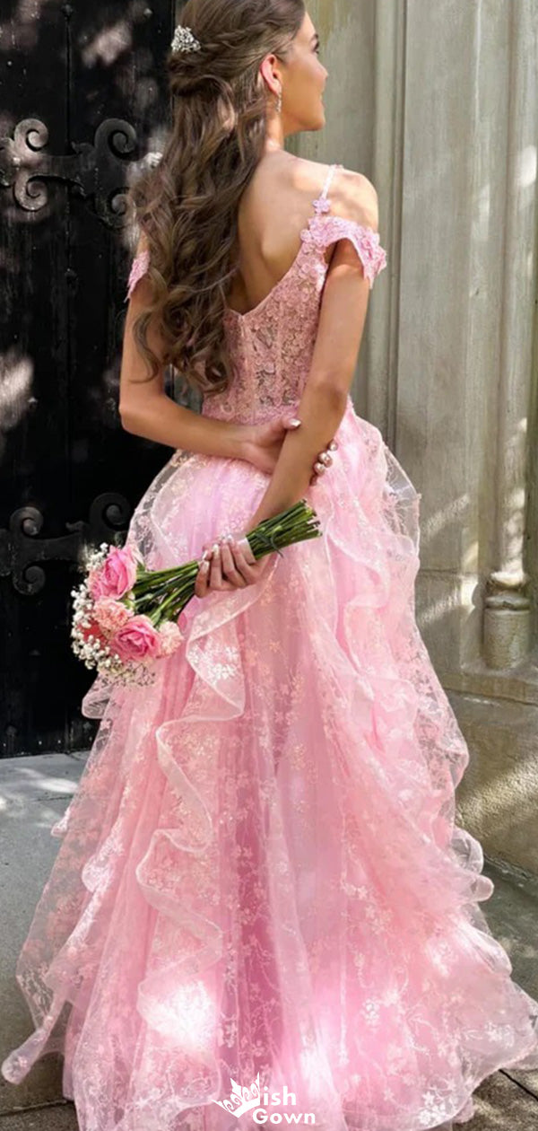 Gorgeous Off-shoulder Spaghetti Strap Lace A-line Long Prom Dress Ideas, Evening Party Dresses,WGP1229