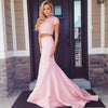 Sexy Pink Two Pieces Beaded Short Sleeve Mermaid Cheap Long Prom Dresses, WG257