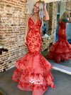 Spaghetti Strap Mermaid Applique Long Prom Dresses PG1169