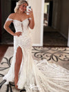 Sexy Mermaid Off Shoulder Sweetheart Sleeveless With Trailing Side Slit Lace Popular Bridal Long Wedding Dresses, WDH132
