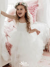 Lovely White Round Neck Sleeveless Applique Ruffle Little Long Flower Girl Dresses, Wedding Flower Girl Dresses, FGD037