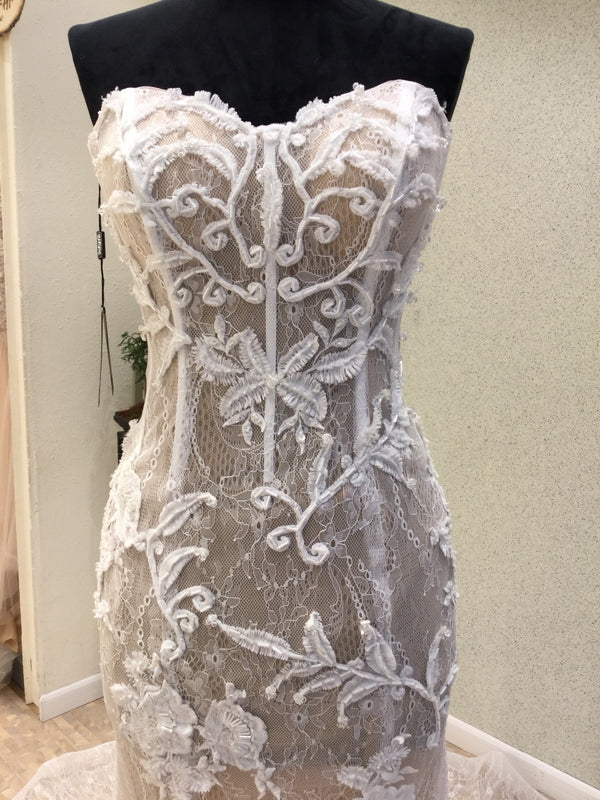 The wedding dresses are fully lined, 4 bones in the bodice, chest pad in the bust, lace up back or zipper back are all available.
