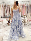 Appliques Rose Spaghetti Strap Tulle A-line Long Party Gowns Prom Dres