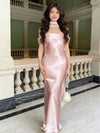 Elegant Pink Satin Column Prom Gown Mock Neck Off-the-Shoulder Formal Dress,WGP2200