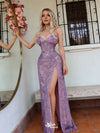 Fancy Lavender Sequin Prom Dress Sweetheart Neck Sleeveless Slit Sparkly Bodycon Gown,WGP2054