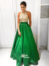Grass Green Beaded Halter Top Elegant Floor Length A-Line Long Prom Dress, WG224