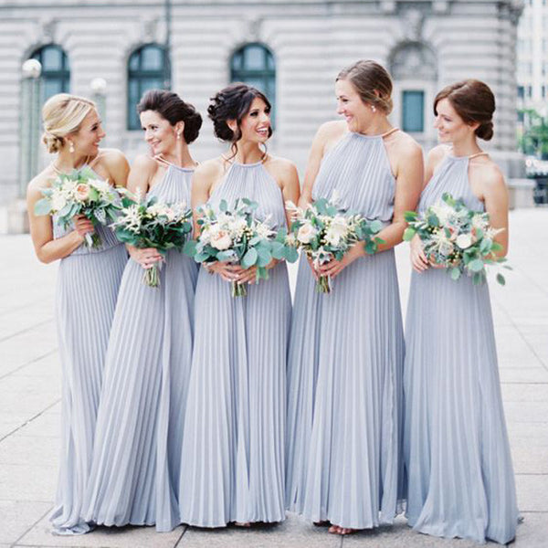 Halter Popular Blue Cheap Long Chiffon Wedding Party Bridesmaid Dresses, WG385
