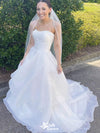 Elegant White Strapless Sleeveless With Train Popular Bridal Long Wedding Dresses, WDH119