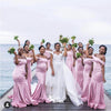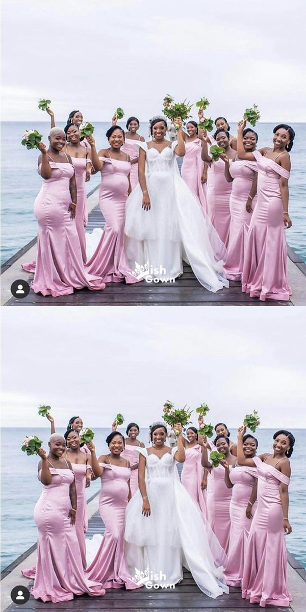 Sexy Pink Mermaid Spaghetti Straps Off Shoulder Long Bridesmaid Dresses, WGM154