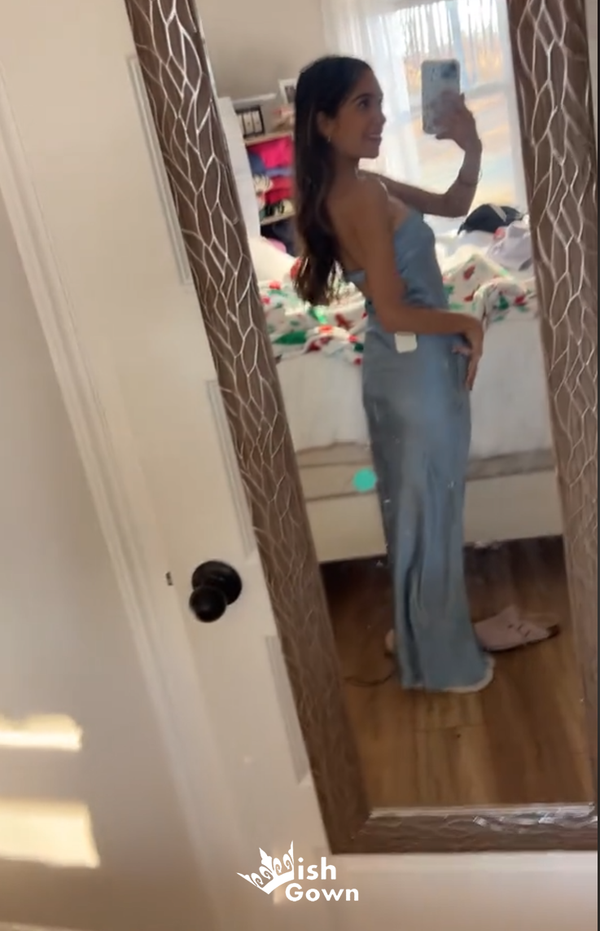 Stylish Strapless Grey Blue Sheath Long Prom Dresses ,WGP1042